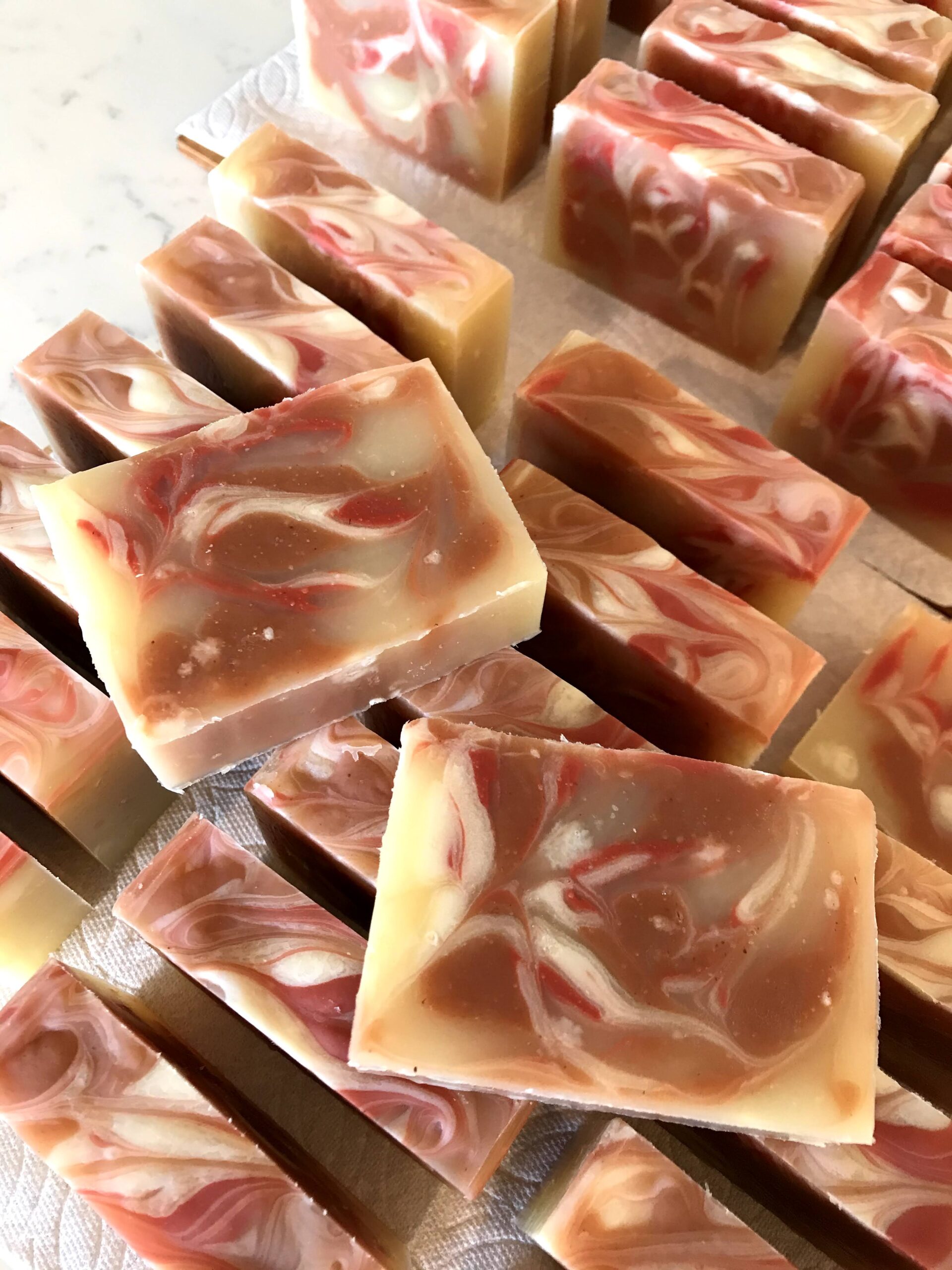 - All of our soaps are “Super-fatted” (add skin nourishing oils at the end of soap making process) for extra moisture and skin nutrition. Naturally created glycerin moisturizes your skin.