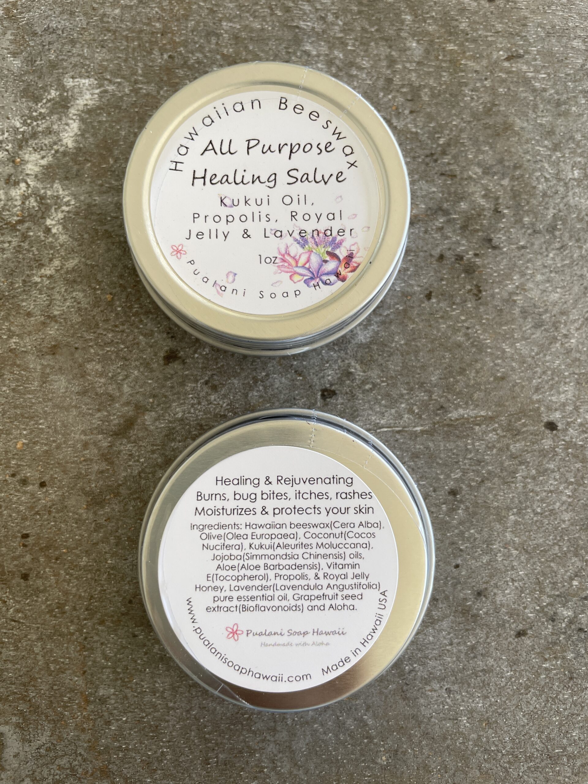 - 1 x Hawaiian Beeswax All Purpose Healing Salve with Kukui Nut oil, Lavender & Propolis (1oz tin)