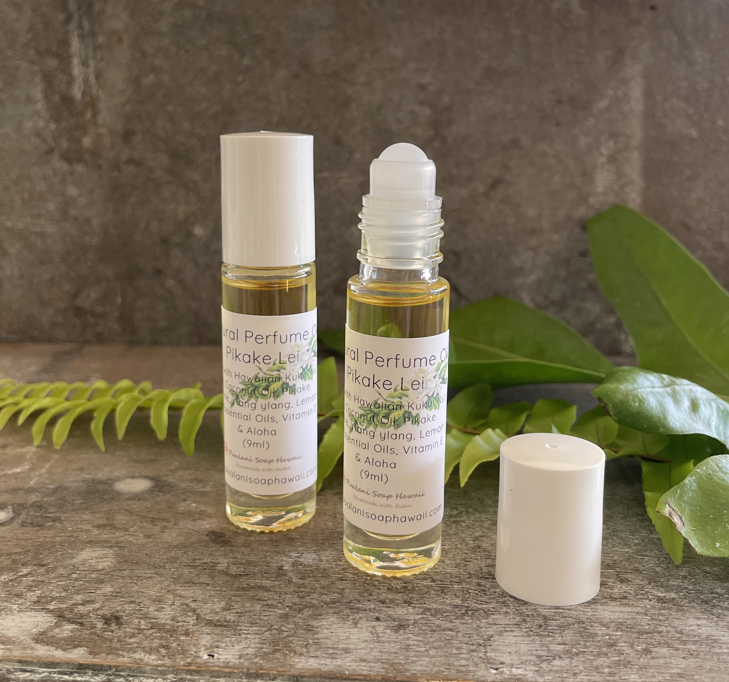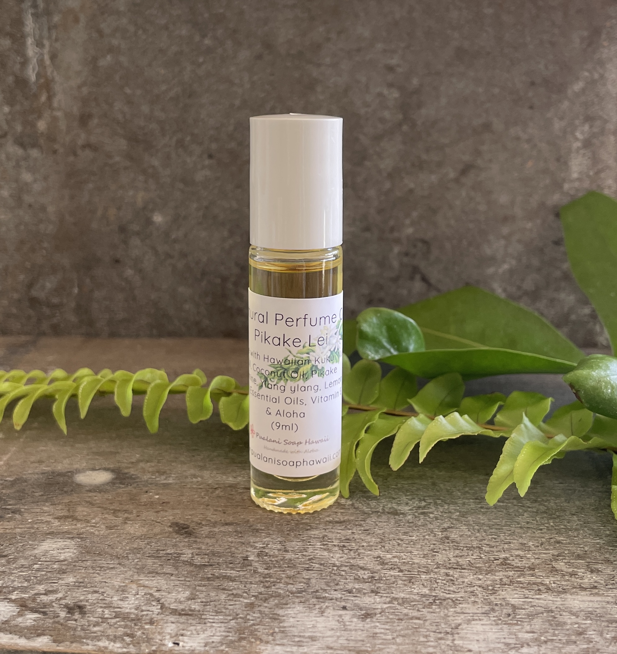 Kukui nut oil, Coconut oil, Pikake (Jasmine), Lemon, Ylang ylang pure essential oils, Vitamin E, and Aloha