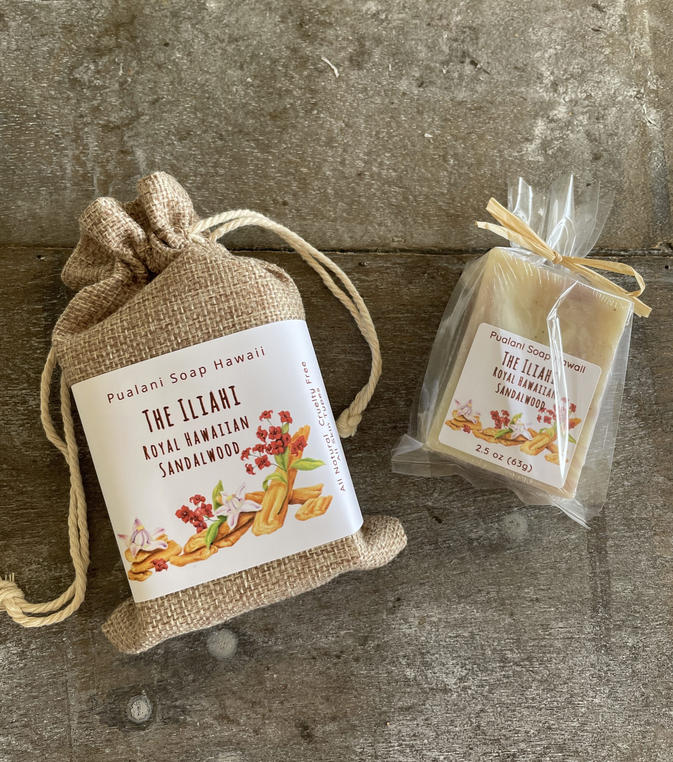 Iliahi is Royal Hawaiian Sandalwood in Hawaiian. The soap is made with the precious pure essential oil. The sandalwood was once only used by Hawaiian royalties. The sandalwood has gentle and warm aroma, made with pure frankincense, bergamot, and ylang ylang essential oils.